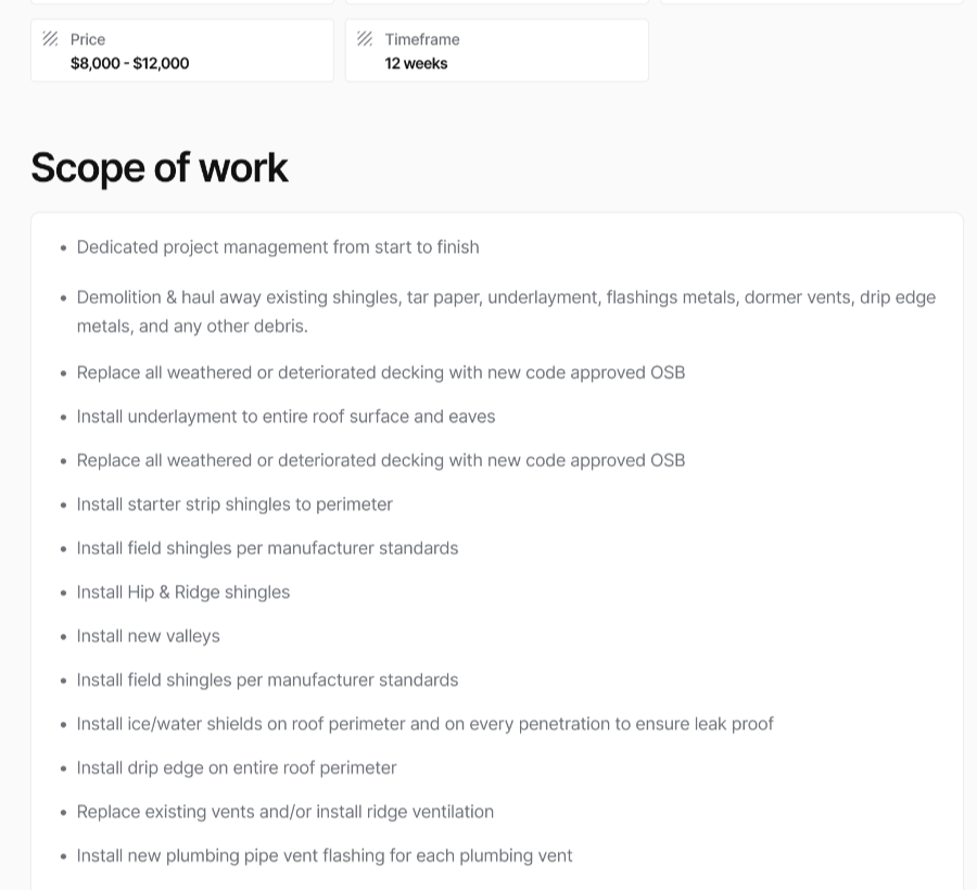 Tailored and accurate. It's not just an estimate. Answer a fewquestions and we'll generate a plan based on your exact roofspecifications and preferences.